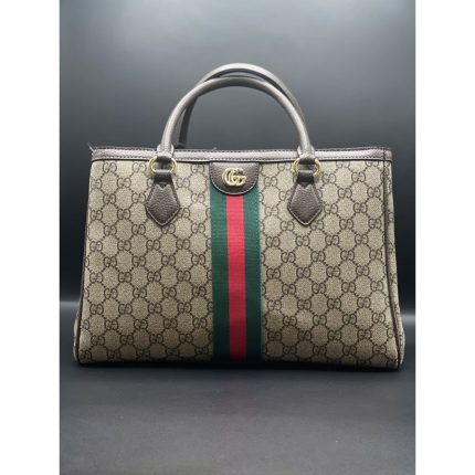 GUCCI OPHIDIA MEDIUM TOTE GG HANDLE BAG BROWN