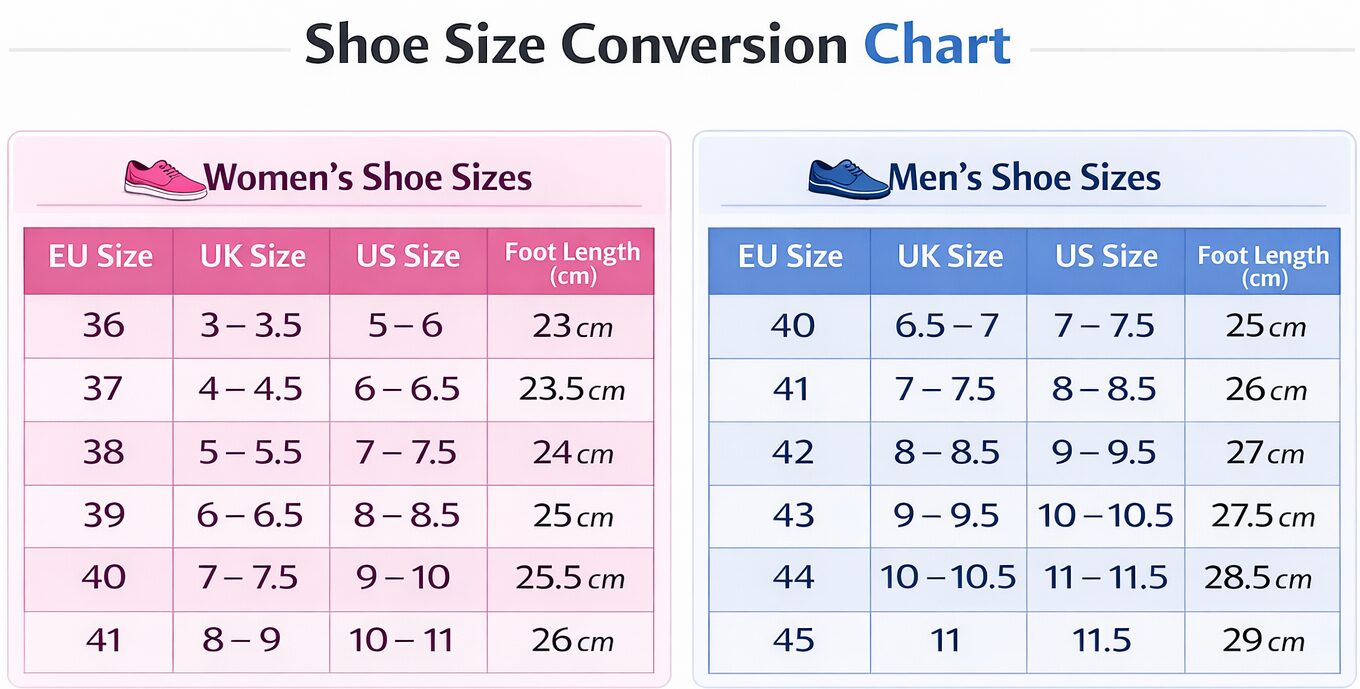 SIZE CHART FOR SHOES