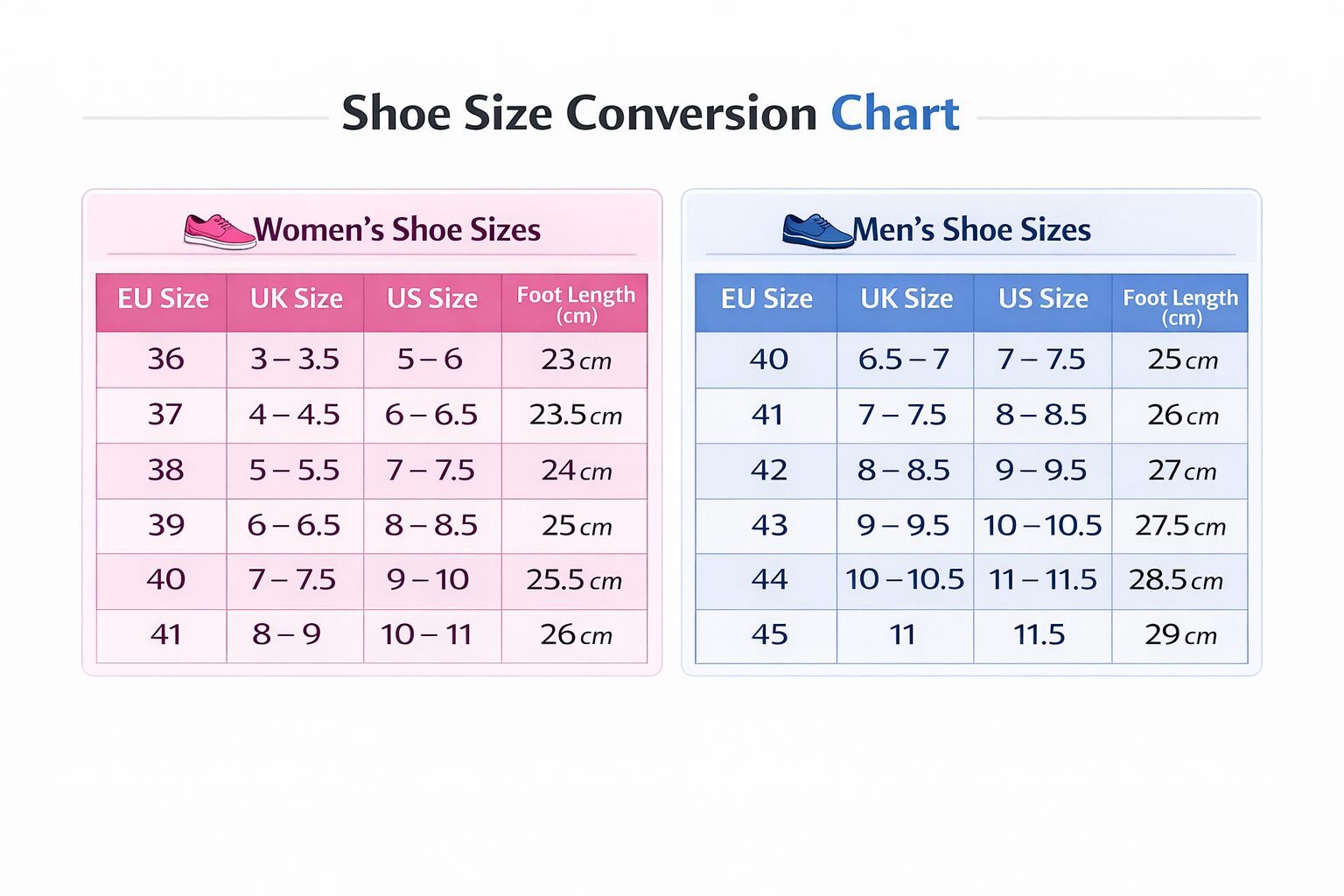 SIZE CHART FOR SHOES