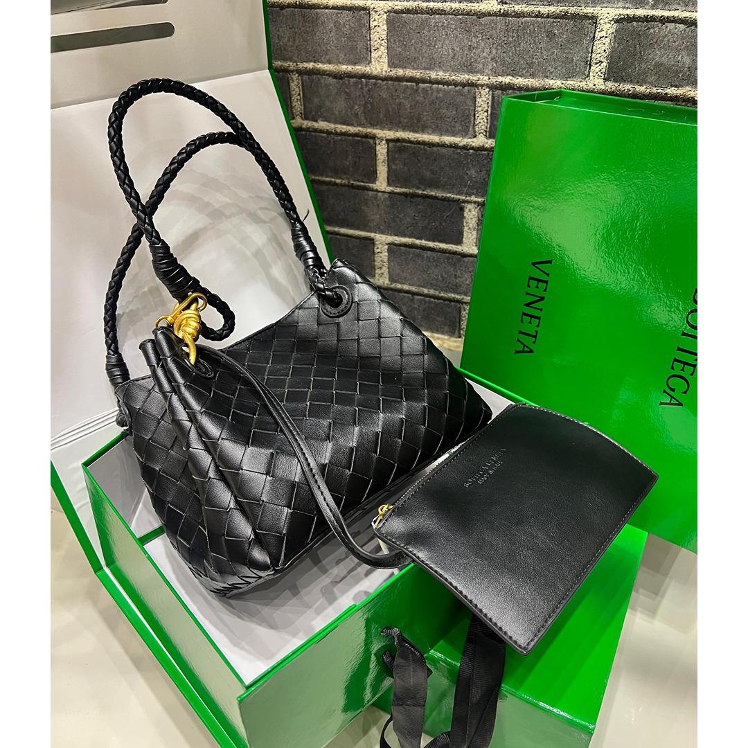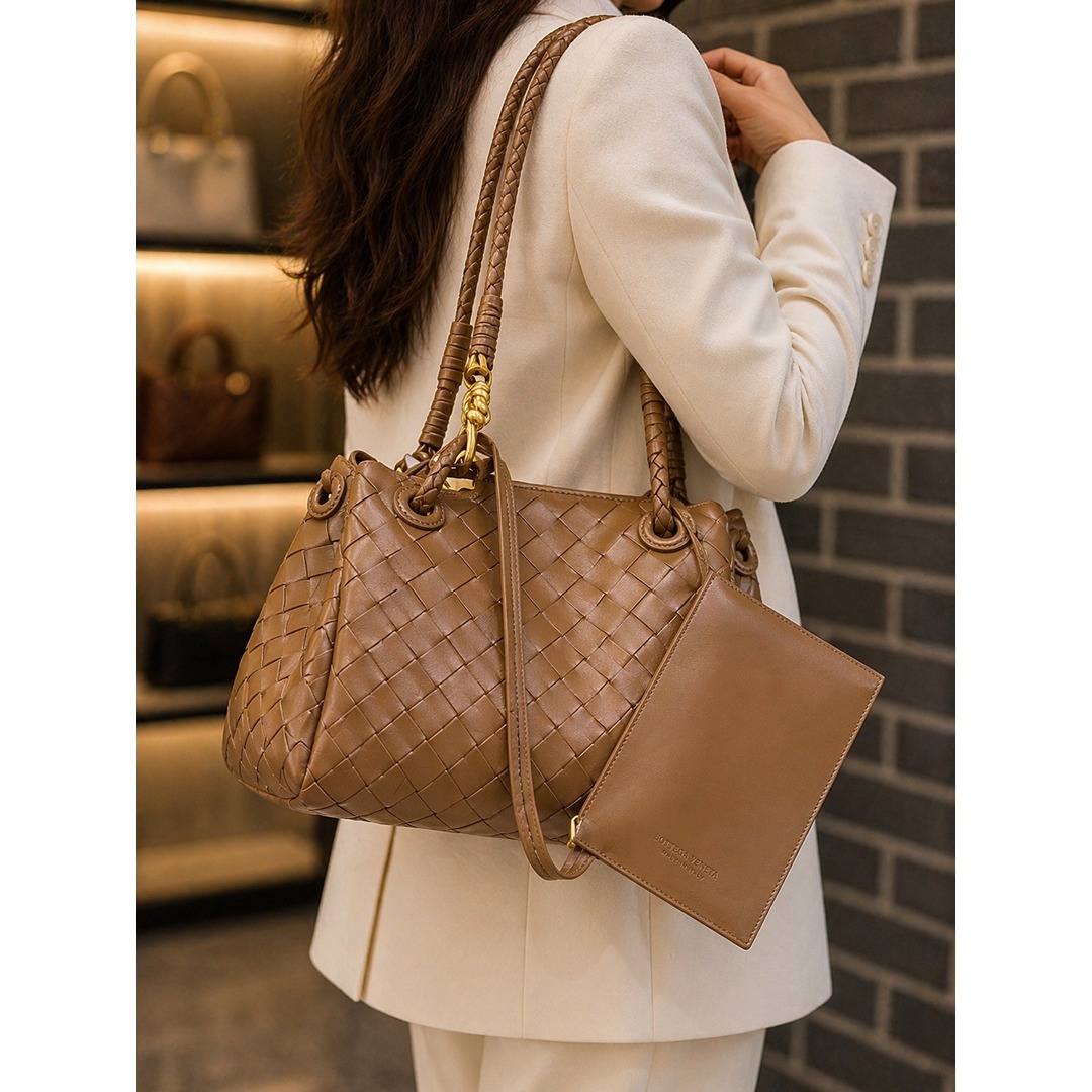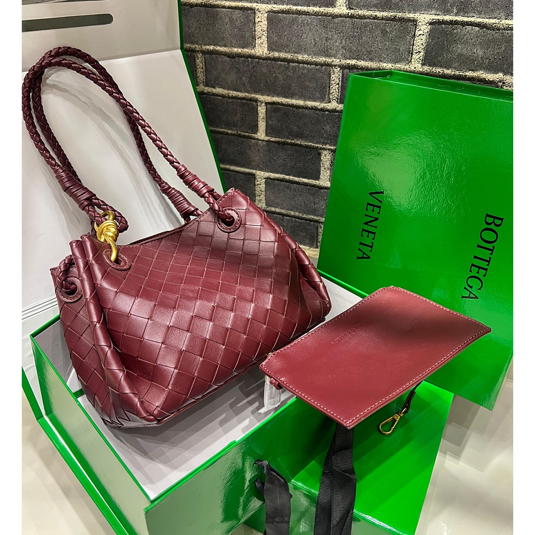 Shoulder Bag in Supple Intrecciato Leather With A signature knot detail and a detachable crossbody strap