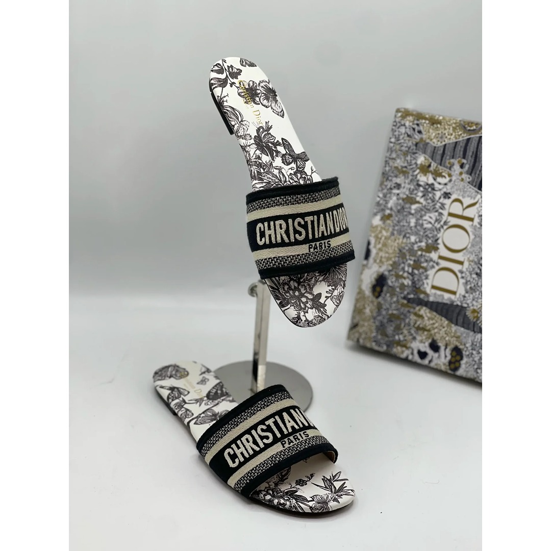 CHRISTIAN DIOR BLACK-WHITE DWAY SLIDE