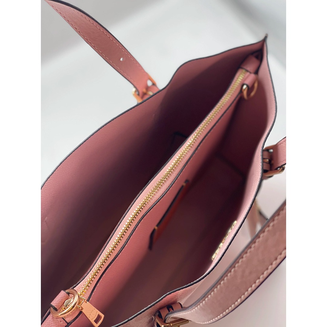 - signature aesthetic: showcases the iconic logo pattern in a beautiful pink hue, complemented by refined hardware accents.