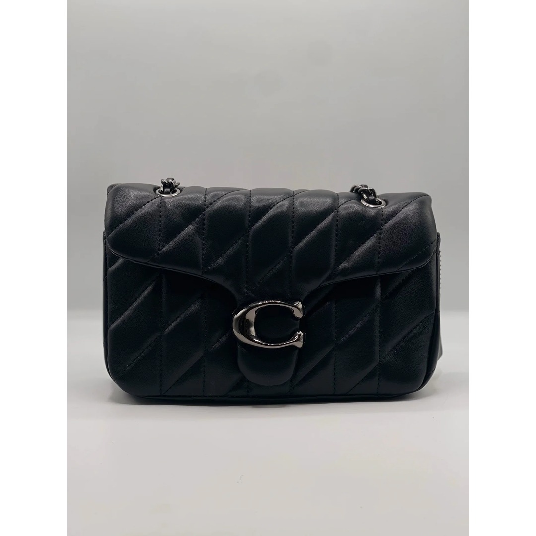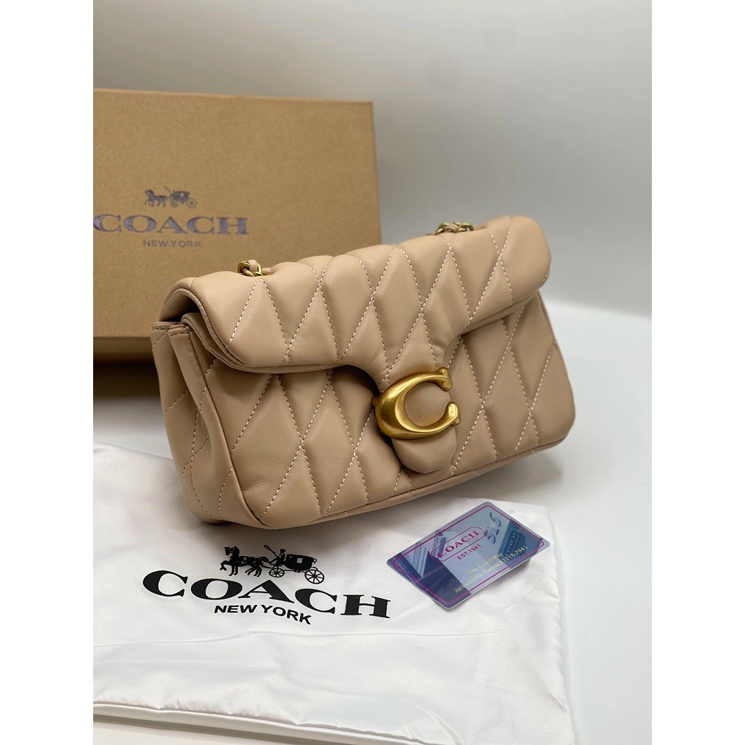 COACH Tabby Quilted features size 26 and a versatile long chain. This luxury set includes a brand box and dust bag for sophisticated, quilted elegance.