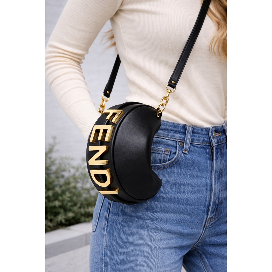 Mini hobo bag, embellished with vintage gold metal FENDI lettering.