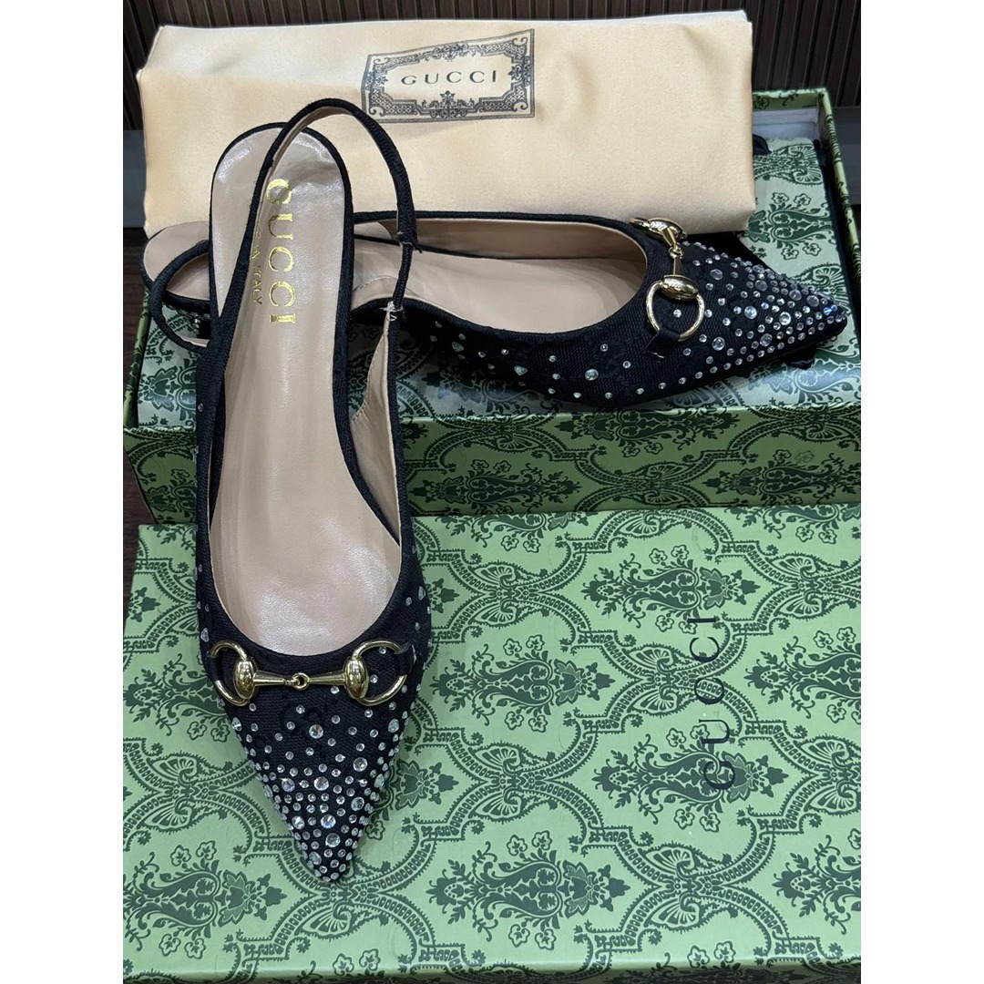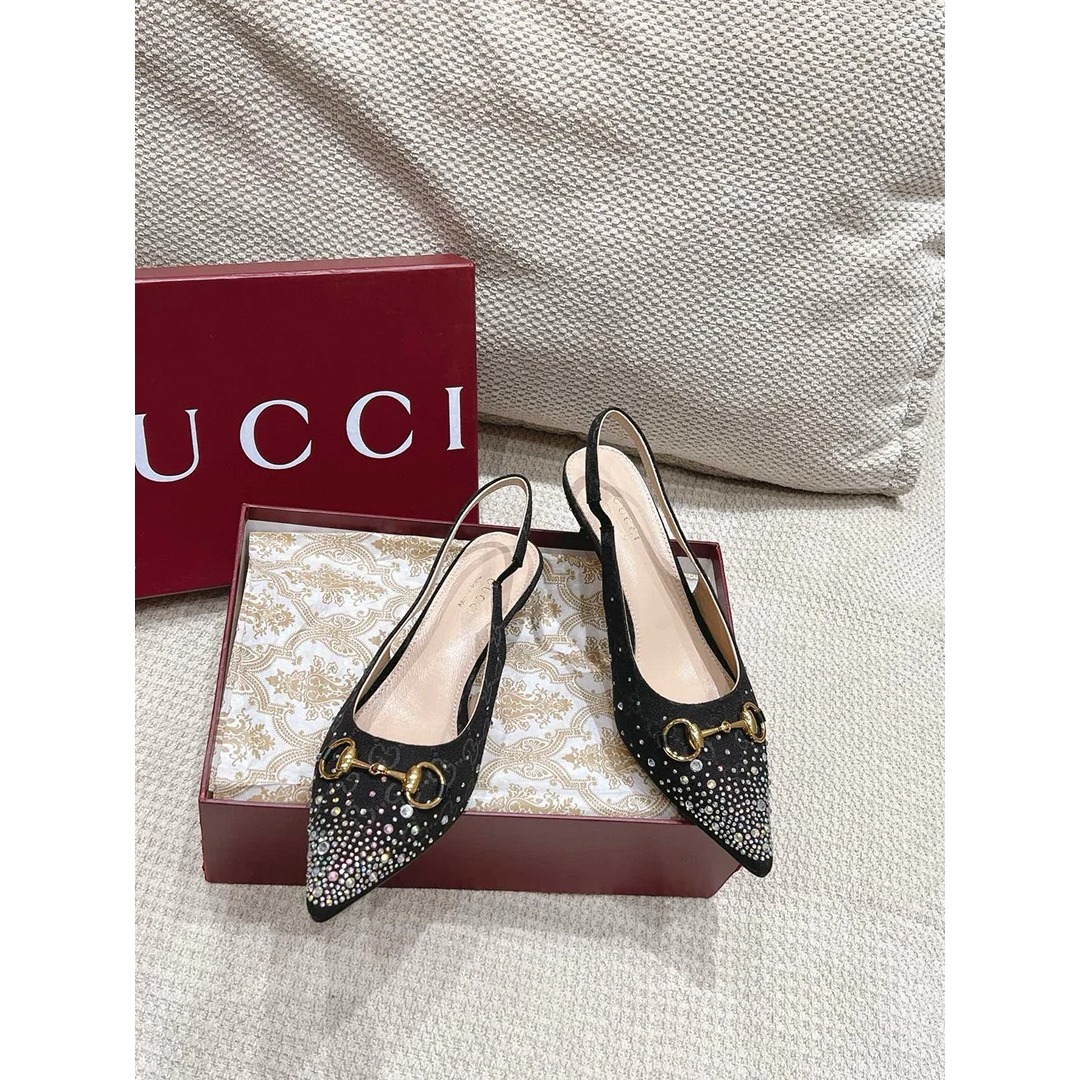 home » Shop » WOMEN » SANDLE & HEELS » GUCCI ERIN CRYSTAL EMBELLISHED BLACK SLINGBACK PUMPS