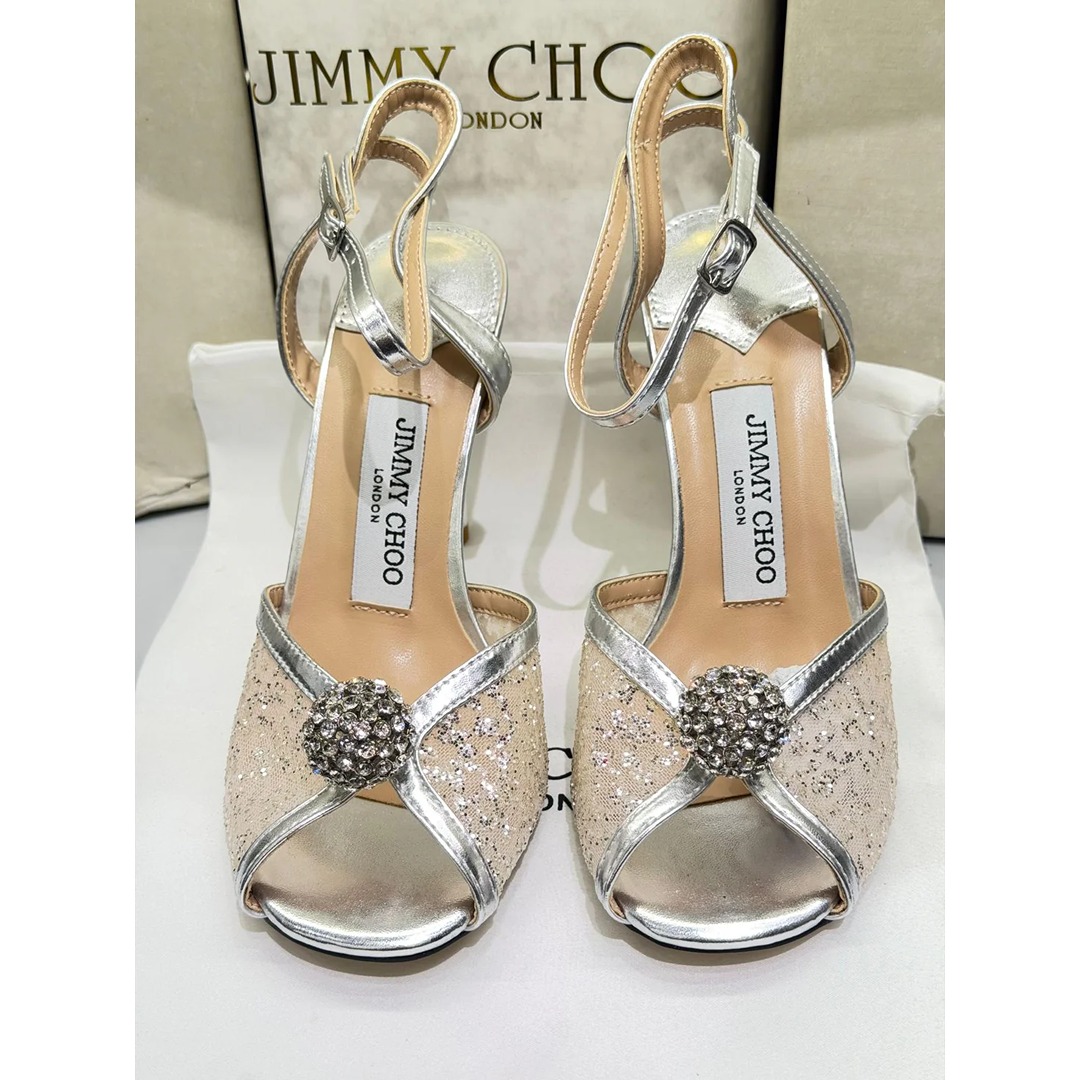 Jimmy Choo Sacora Caviar Glitter Crystal Embellished Heel is designed for women who want to stand out with elegance and shine. Featuring a glitter-finish upper with crystal embellishments, this heel adds a premium luxury touch to any outfit.