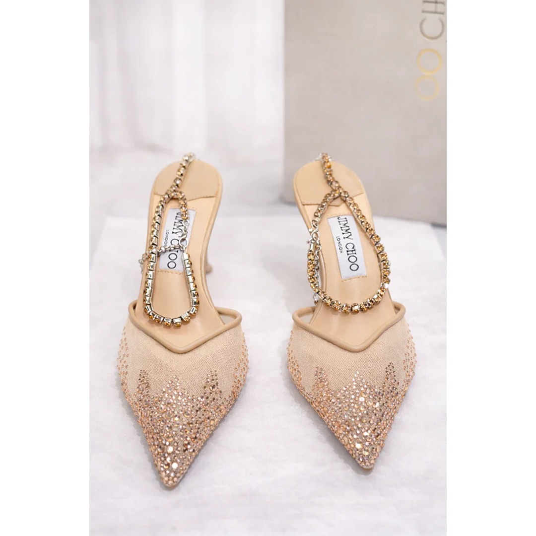 JIMMY CHOO SAEDA 100 CRYSTAL EMBELLISHED ANKLE BRACELET STRAP CHAMPAGNE