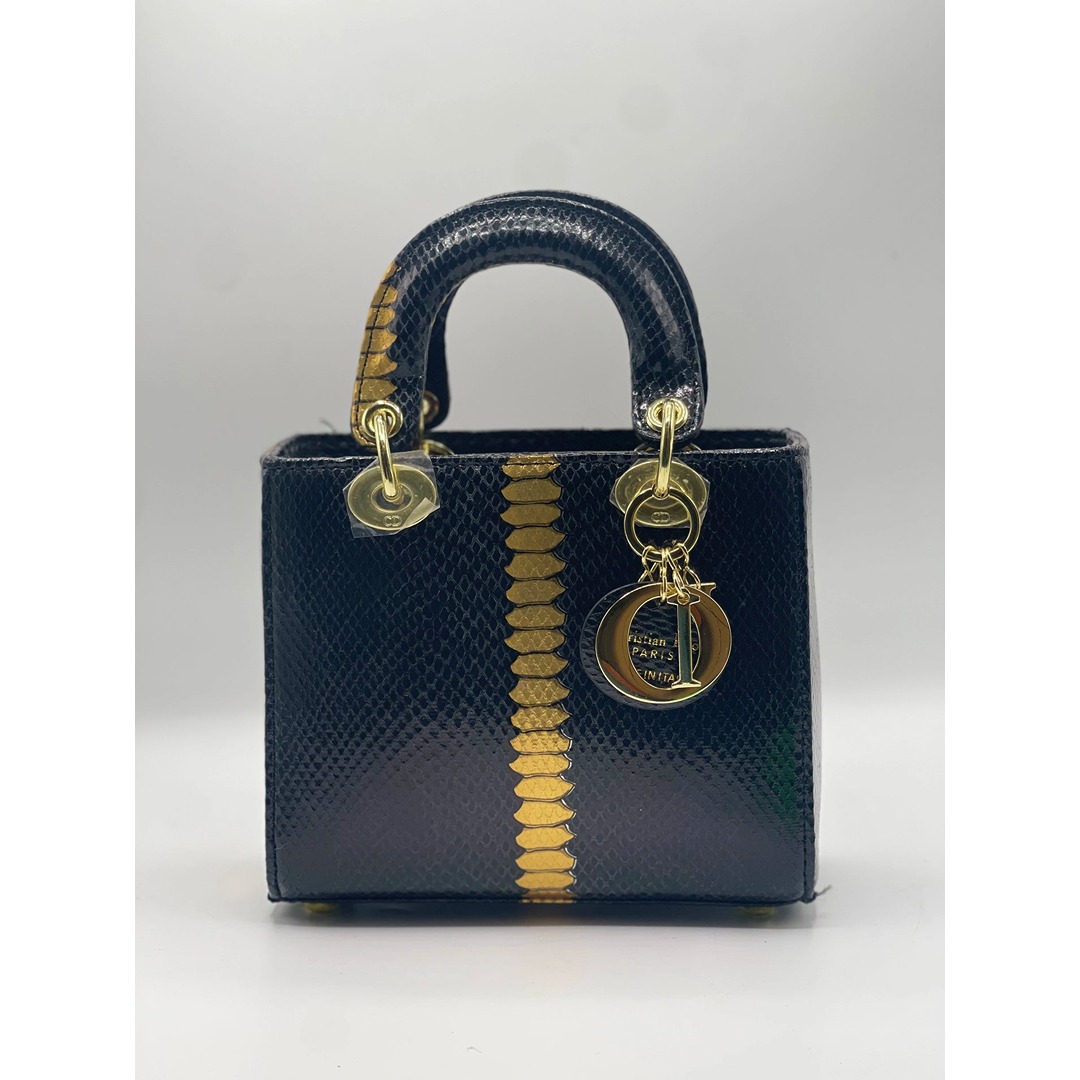 Embrace timeless elegance with the LADY DIOR HANDBAG, a masterpiece of luxury and sophisticated design. This exquisite handbag features a stunning black python-embossed exterior accented by a bold, gold-toned vertical scale pattern that demands attention. Its structured silhouette and iconic aesthetic make it the ultimate accessory for the modern woman who values high-fashion artistry.