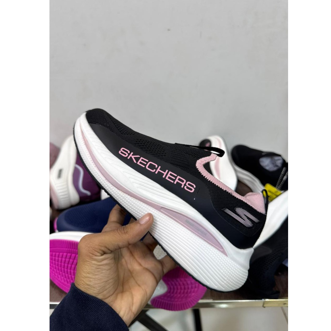 SKECHERS MAX CUSHION BLACK PINK-WHITE SLIP ON WOMEN SHOES