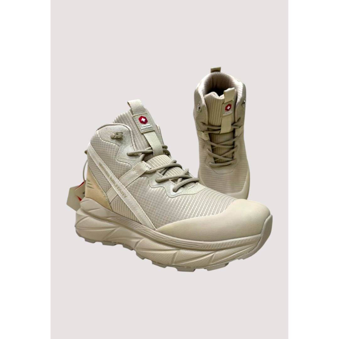 The Swiss Military Beige High-Top Sneakers blend outdoor utility with modern everyday styling. Built with a supportive high-top structure, these sneakers provide enhanced ankle stability and protection, ideal for walks, travel, and active routines.