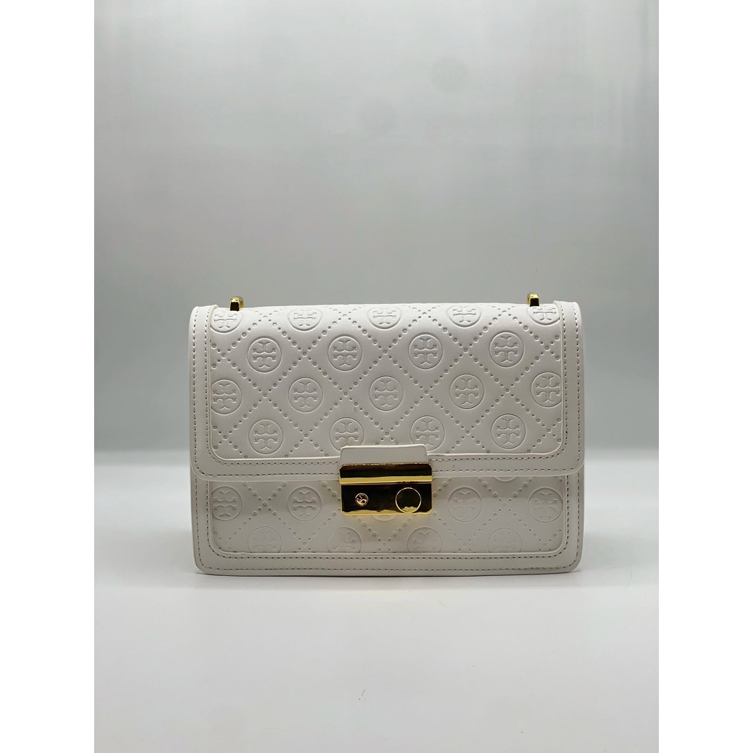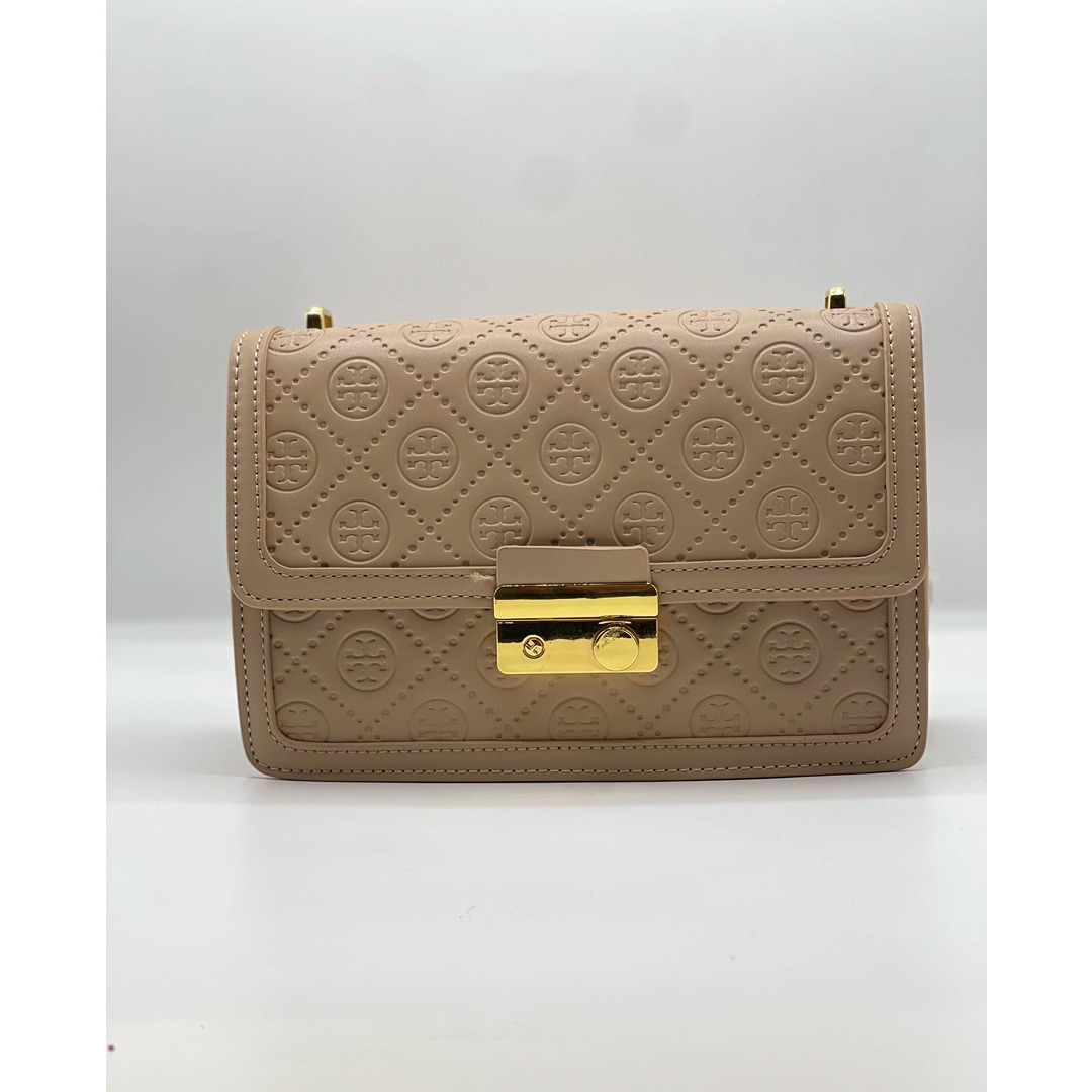 This T Monogram Shoulder Bag features premium leather construction and a press-lock closure. A versatile medium shoulder bag including an adjustable strap and a dust bag.