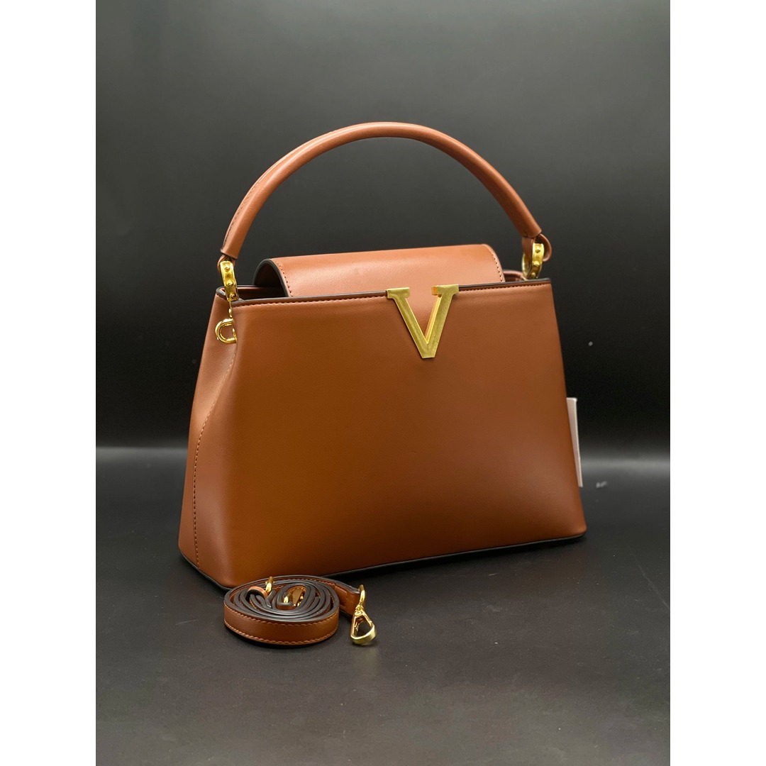 Elevate your style with thisΒ VLN-inspired luxury handbag, a masterpiece of minimalist design and high-end sophistication. Perfectly crafted for the modern woman, this bag features a smoothΒ tan leather-style finishΒ that radiates class. The focal point is the stunningΒ gold-tone “V” emblem, which adds an unmistakable touch of prestige to any ensemble.